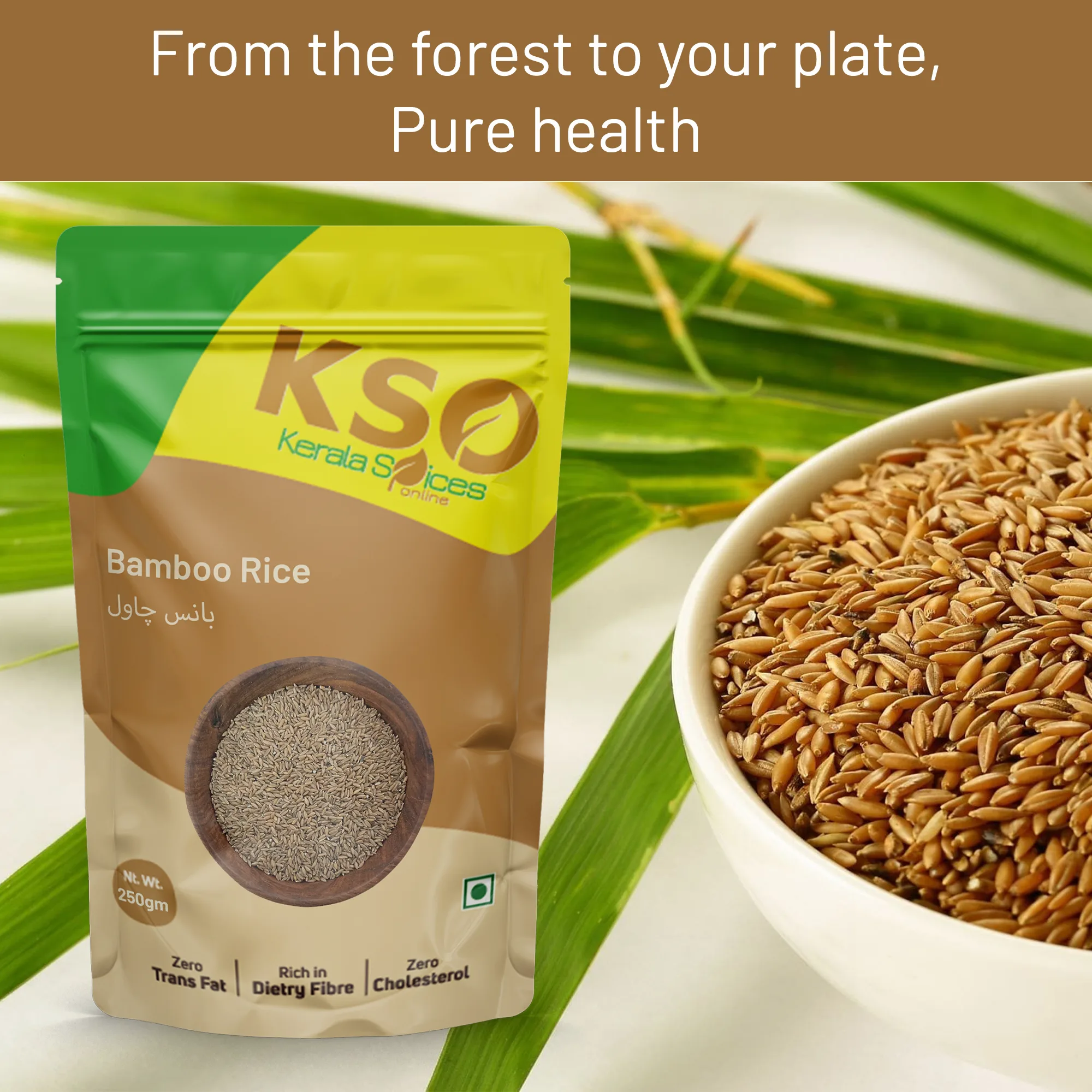 Bamboo rice is rich in various nutrients and minerals including carbohydrates, fibre and protein. Bamboo rice has properties that enhances fertility. Bamboo rice tastes like wheat but has a low glycemic index which best suits for diabetic patients.