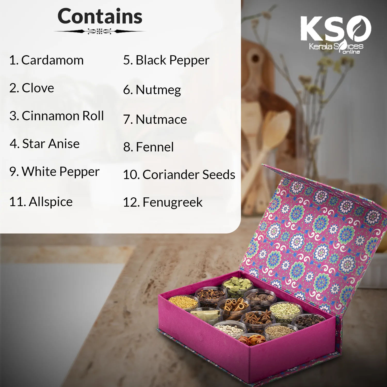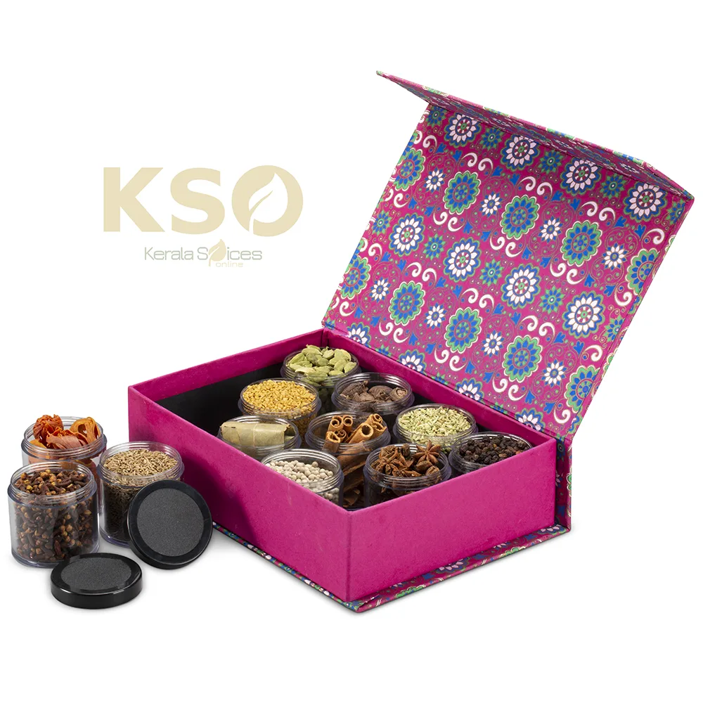 The KSO Corporate gift box is elegantly presented in an eco-friendly box, reflecting your commitment to sustainability and appreciation for your corporate partners. Twelve sleek acrylic glass bottles showcase the spices, ensuring they remain fresh, fragrant, and easily accessible.