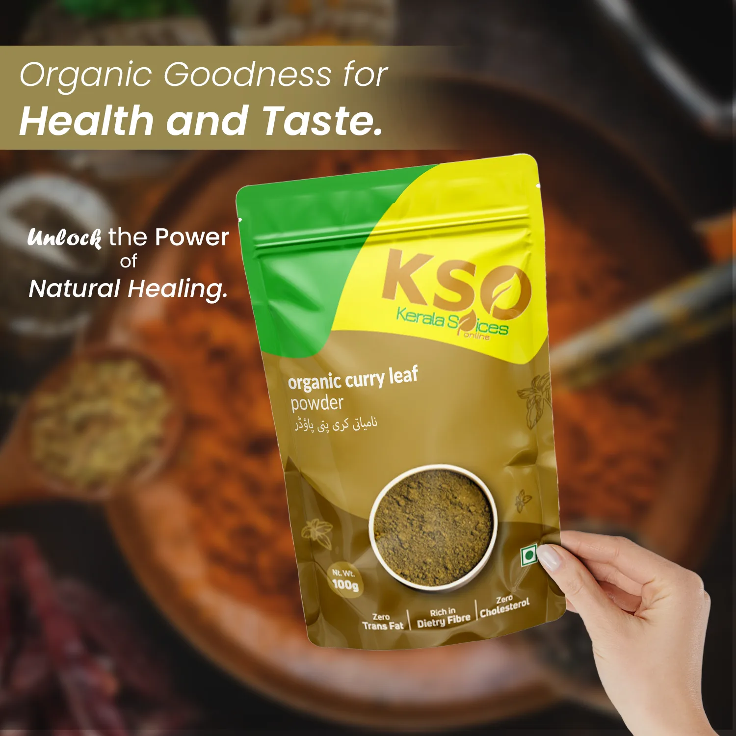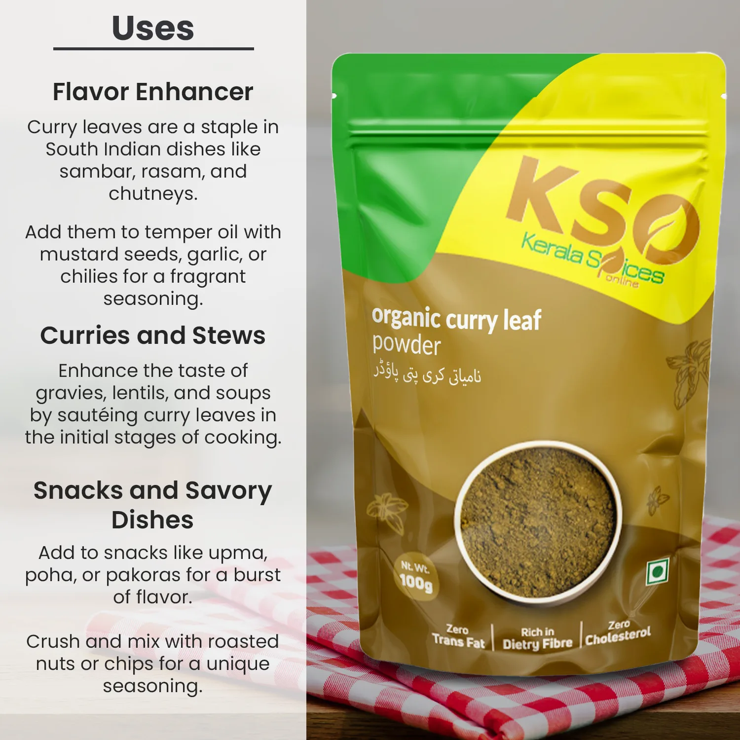If you enjoy the rich and aromatic flavors of curry leaves, this organic curry leaf powder should be in your pantry. Our best curry leaf powder is made from carefully picked organic curry leaves and captures the essence of this ancient ingredient. Its brilliant green hue and powerful flavor will elevate your dishes to new heights.