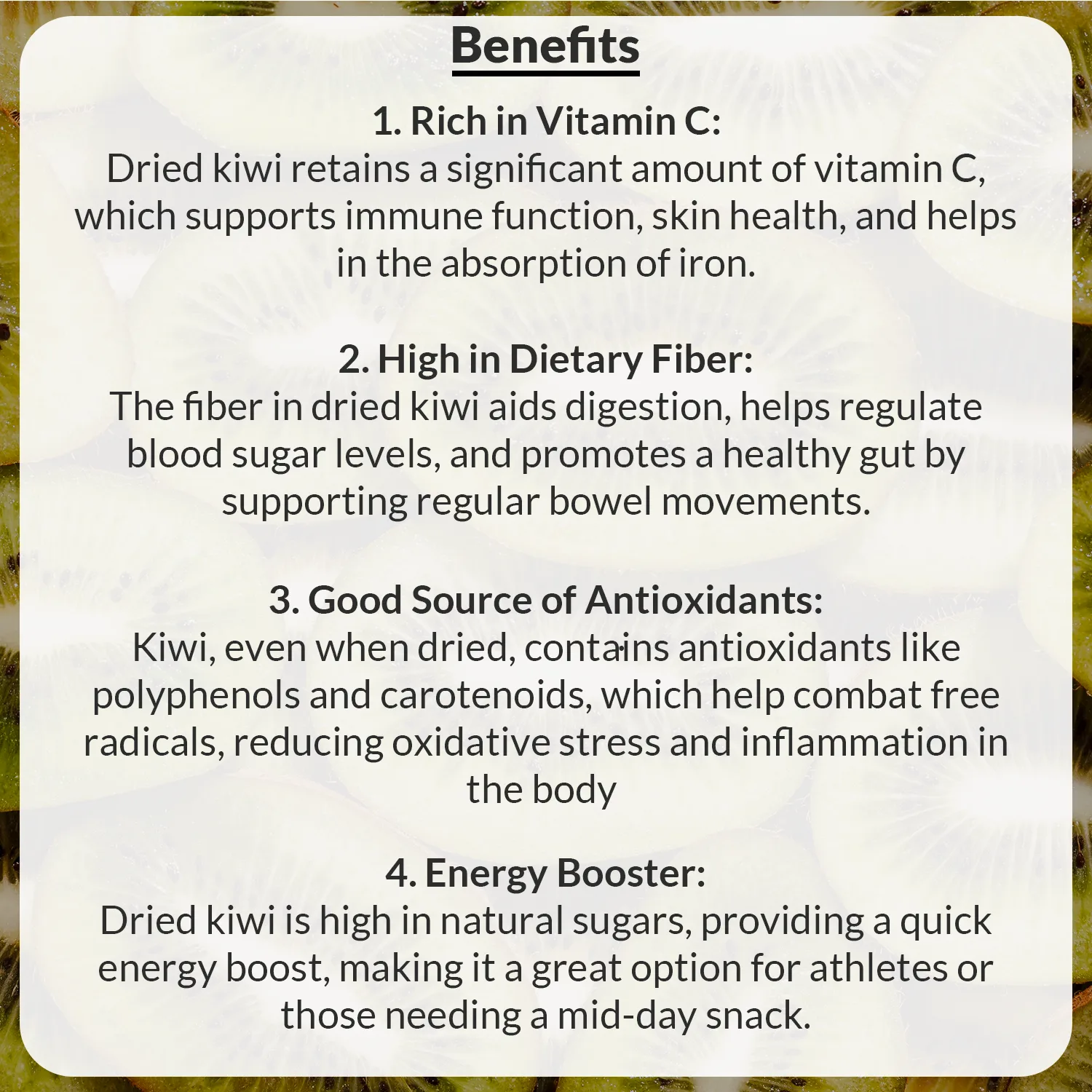 Original price was: ₹280.00.₹180.00Current price is: ₹180.00. (Inclusive of all taxes).Dried Kiwi 100g