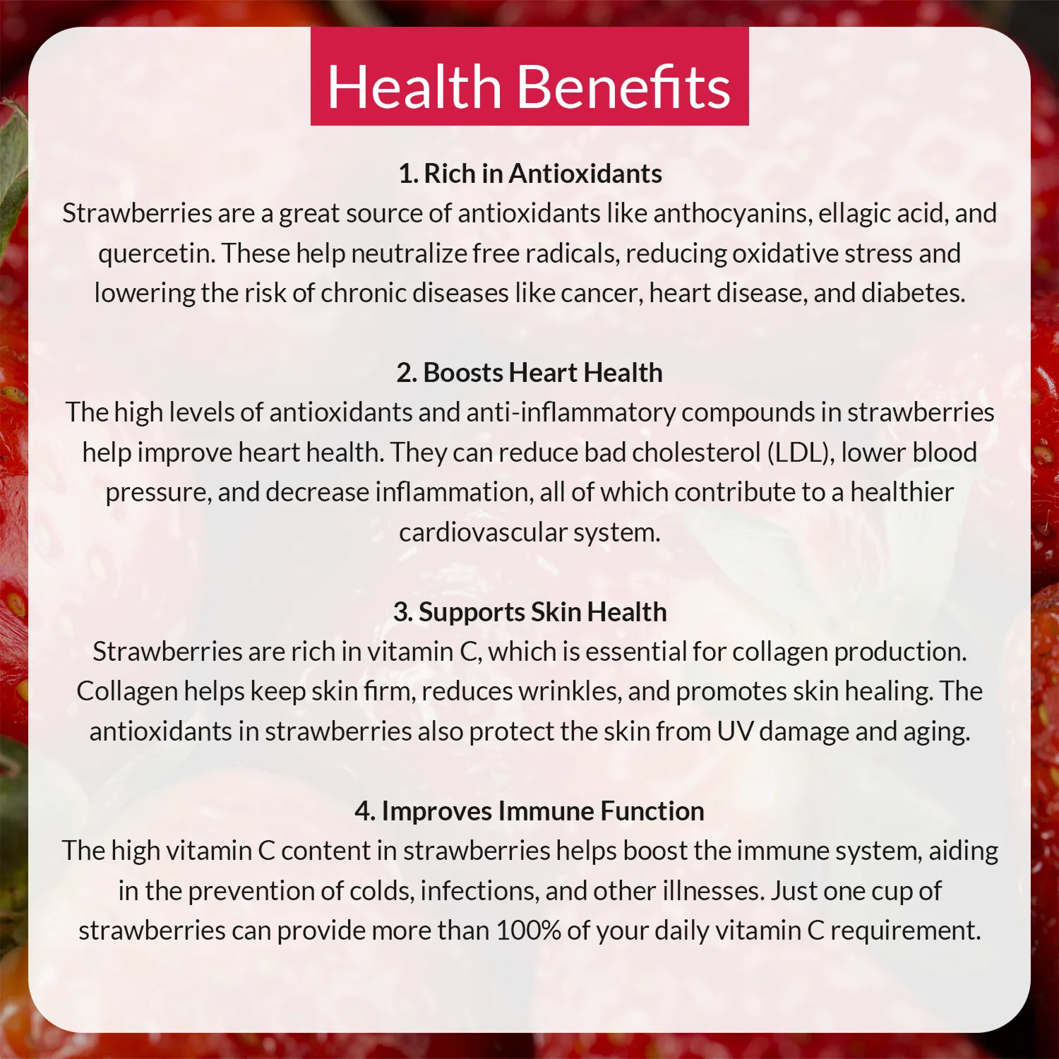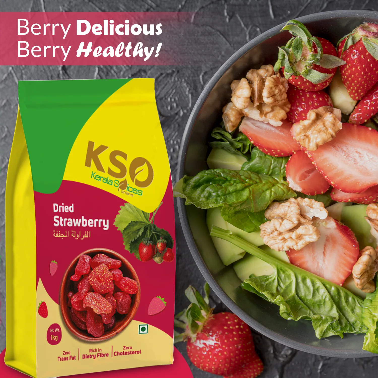 Dried strawberries are a tasty, portable and healthy snack.  Dried fruit can boost your fiber and nutrient intake and supply your body with large amounts of antioxidants.