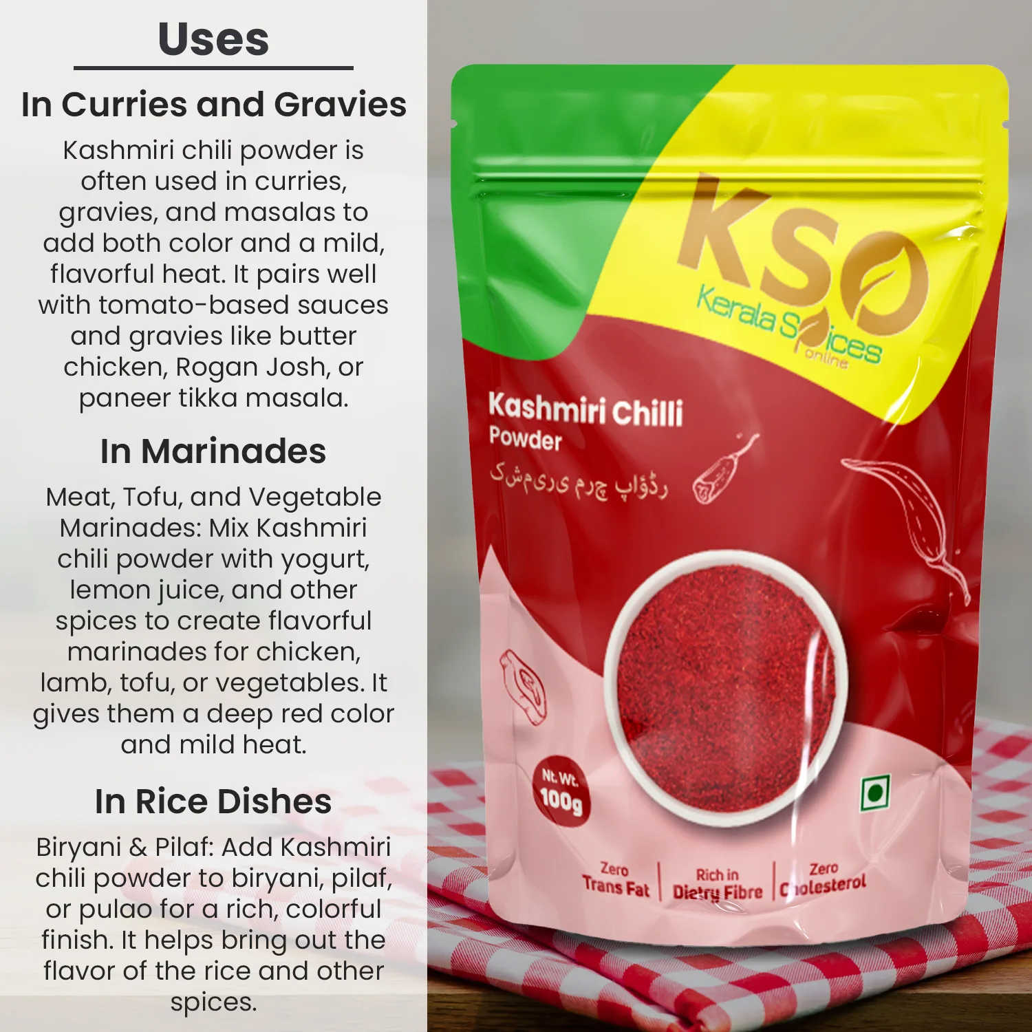 - Pure & Natural: No additives, no artificial colours. Its 100% pure Kashmiri mirch powder for an authentic taste.