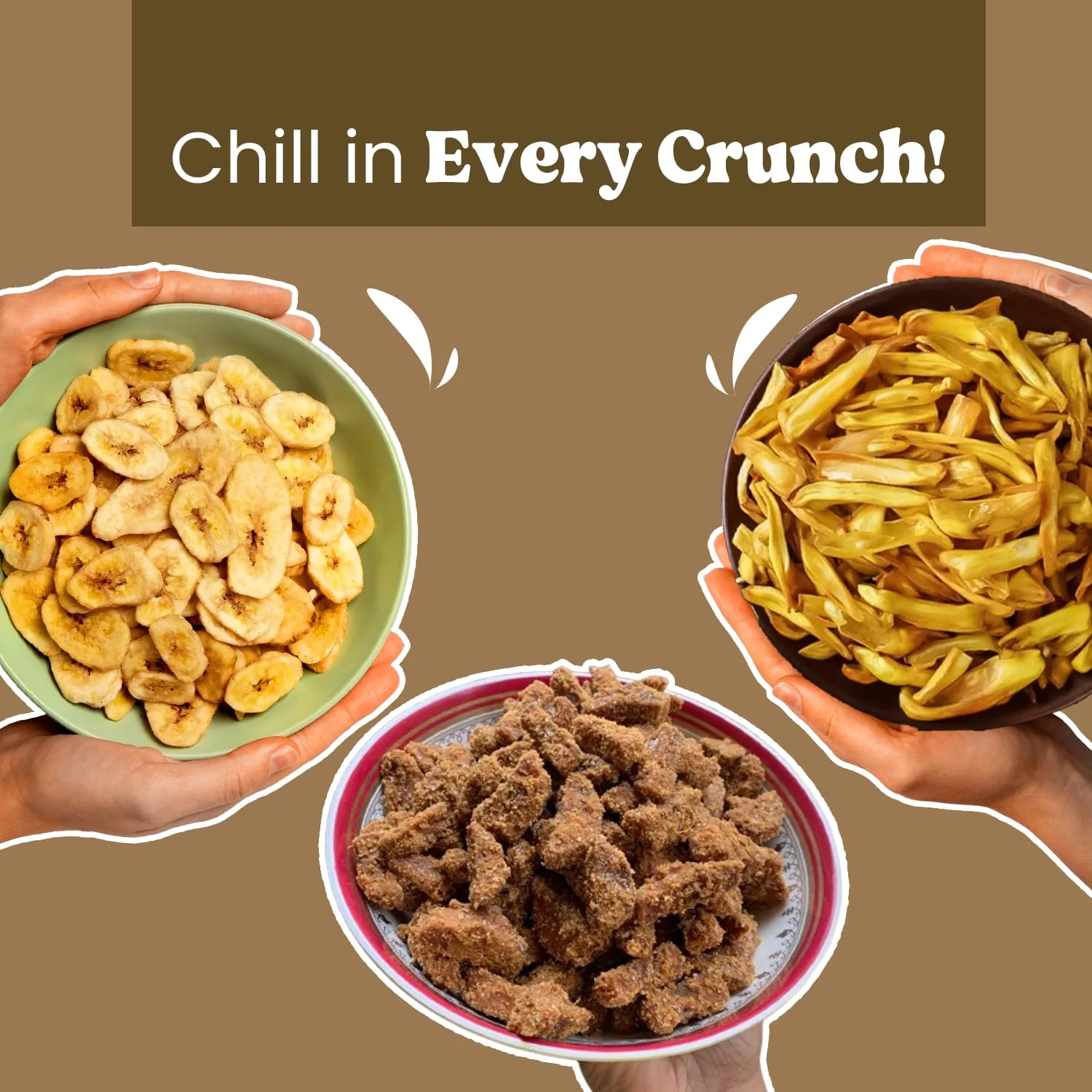 - Quality Ingredients: We use only the finest locally sourced bananas, jackfruits, and jaggery, fried in pure coconut oil for that distinctive Kerala taste.