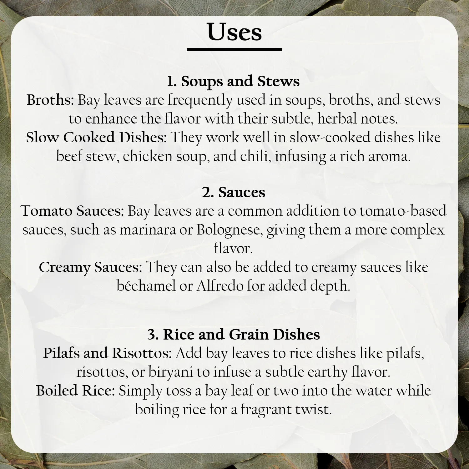 Our whole bay leaves are pure and natural that comes with a strong aroma with a slight minty taste that adds freshness and enhancement of flavors to your cuisines. Bay leaf herbs are enriched with various micronutrients including vitamins, minerals, and fiber. Tej patta is also used as a home remedy to reduce digestive issues.