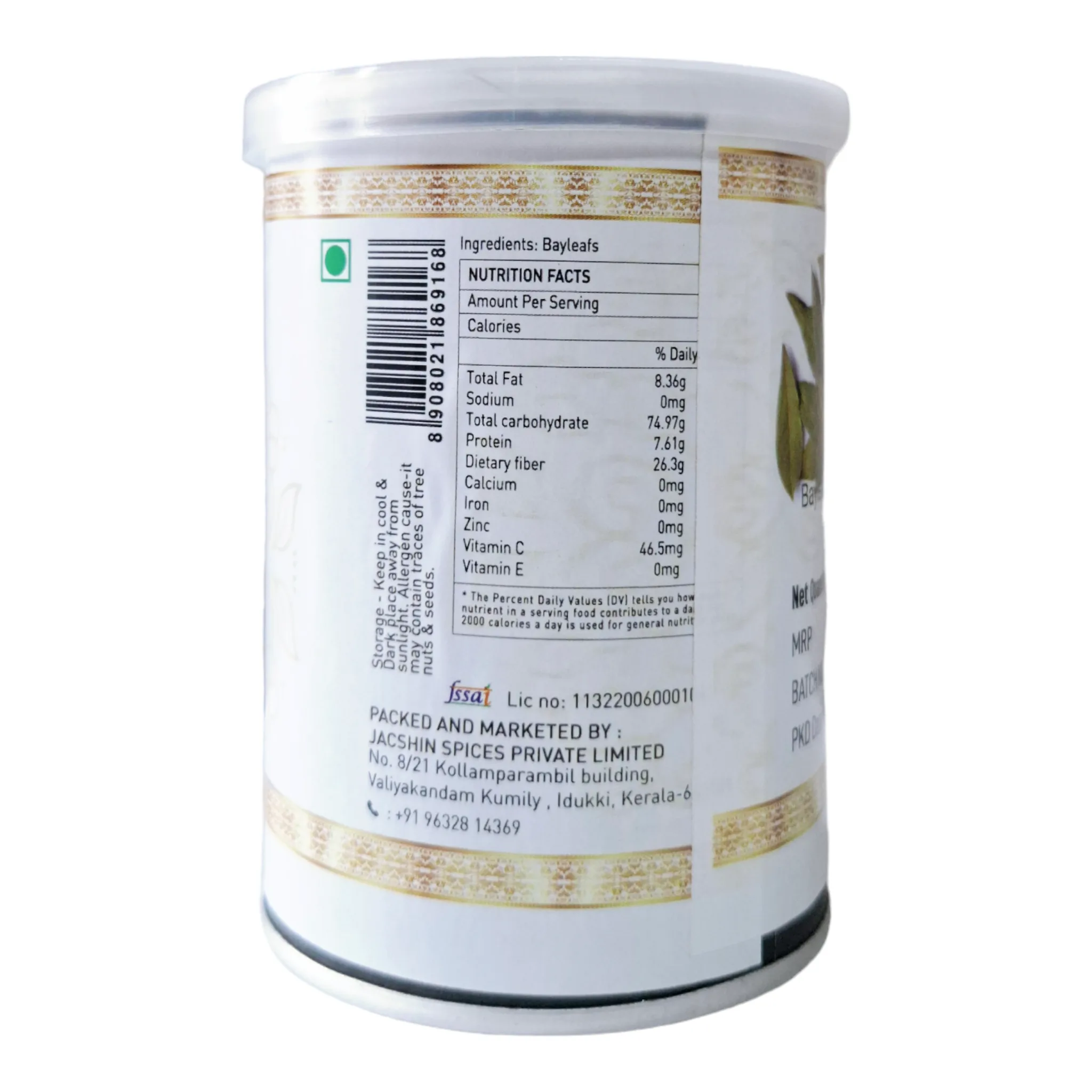 This handpicked homestead produce is sourced from the Idukki district in Kerala. Our whole bay leaves are pure and natural that comes with a strong aroma with a slight minty taste that adds freshness and enhancement of flavors to your cuisines. Bay leaf herbs are enriched with various micronutrients including vitamins, minerals, and fiber. Tej patta is also used as a home remedy to reduce digestive issues.