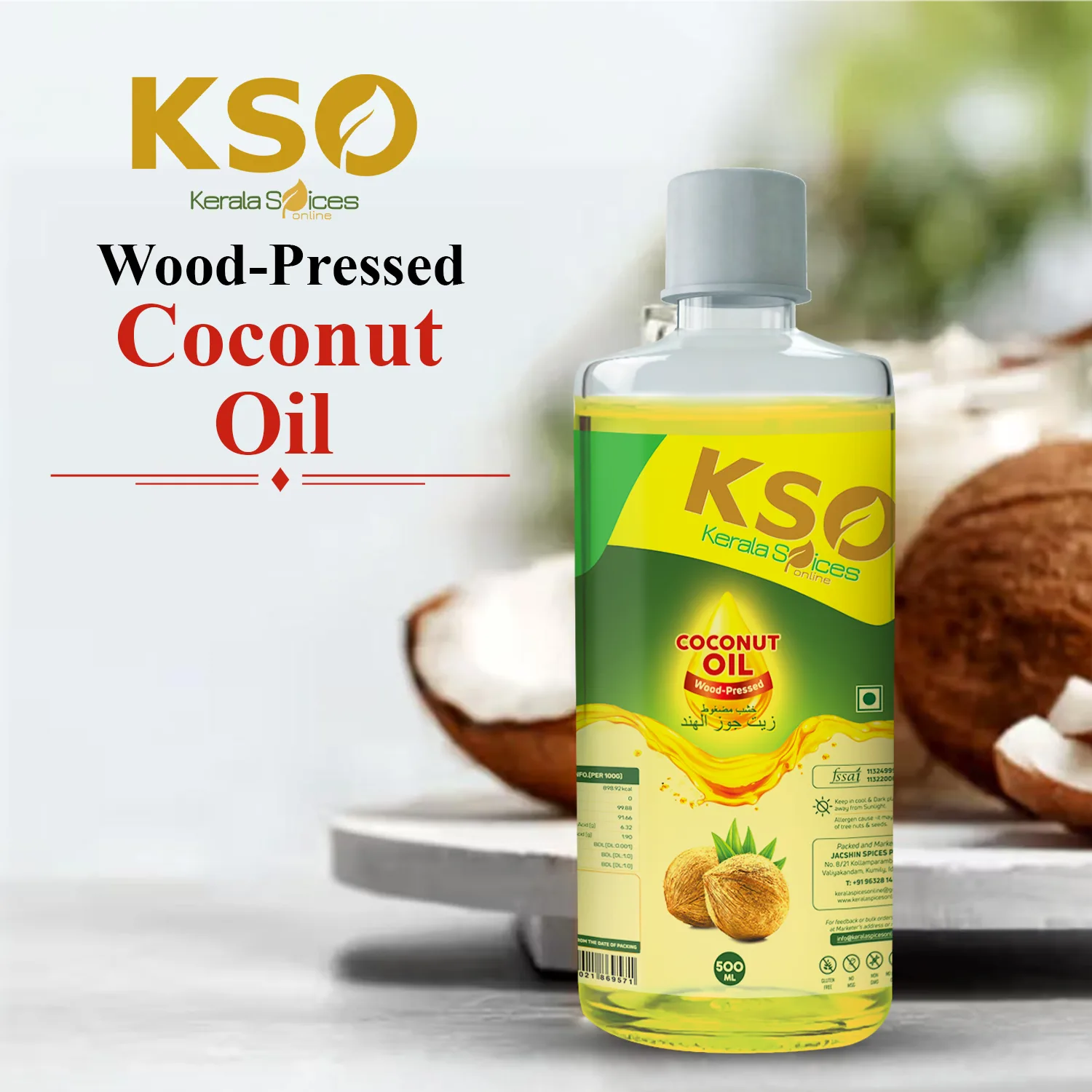 KSO wood pressed Coconut oil is 100% edible oil extracted from the kernel or meat of mature coconuts harvested from the coconut palm (Cocos nucifera).