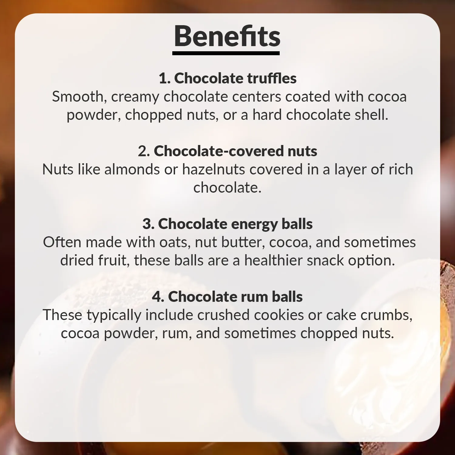 Unlike mass-produced chocolates, our homemade chocolates are carefully crafted in small batches to maintain the highest standards of quality and flavor. - Irresistibly Smooth: