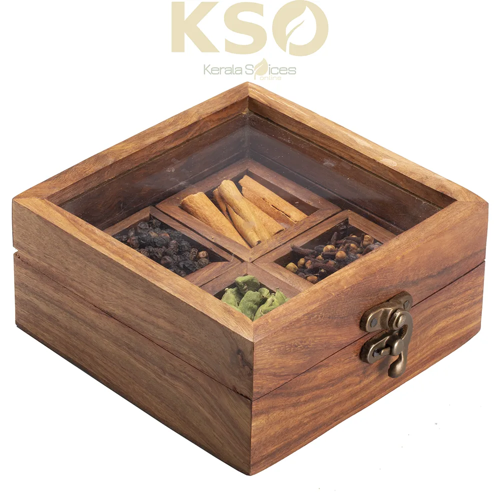 It is a very good option for gifting purposes or as a masala box. The box is made of sheesham wood, and the top has a glass lid to see what is inside, so there is no issue of breaking. It was made by expert local artists by hand.