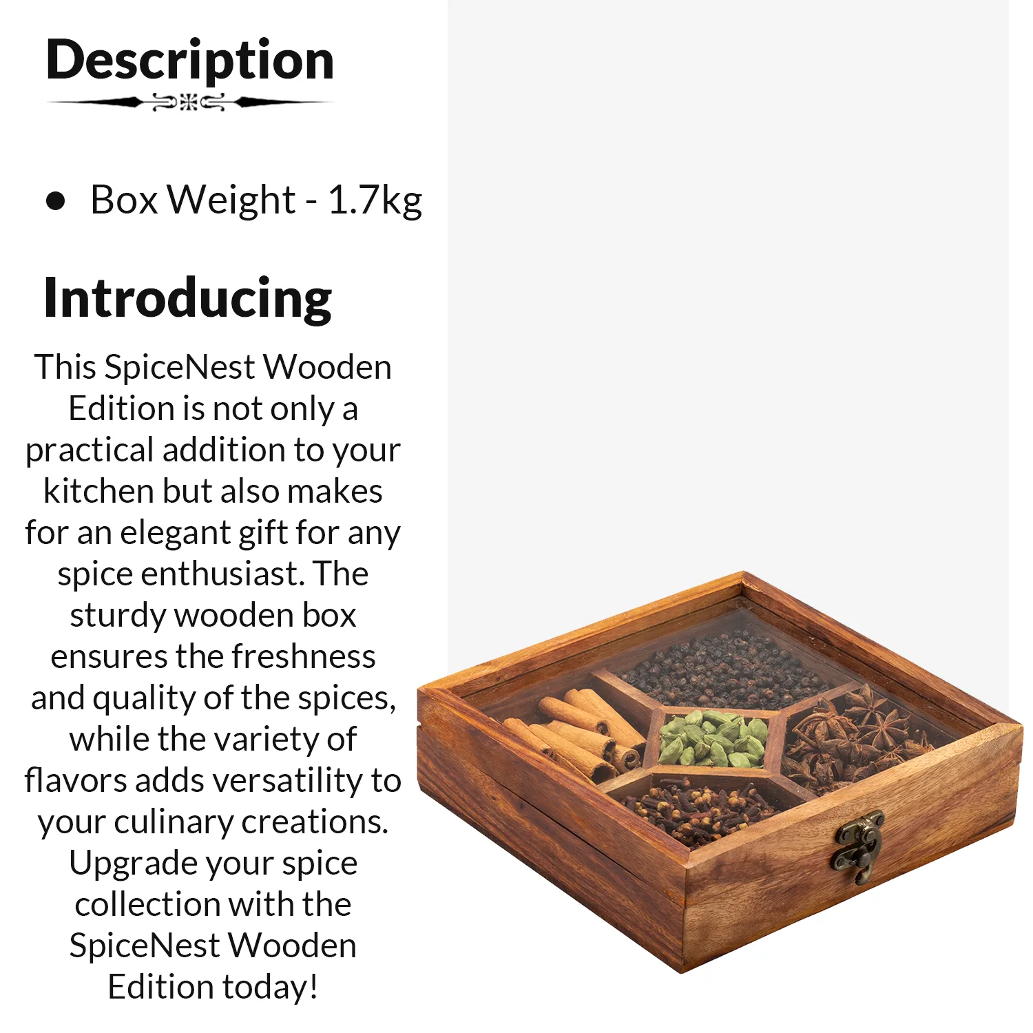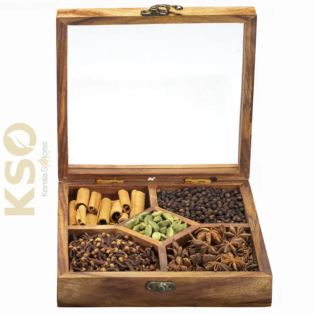 This carefully curated  wooden Spices gift box includes:
